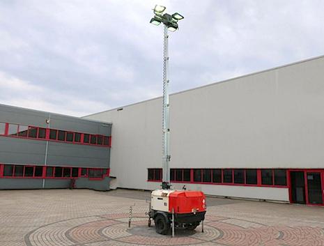 rok 2010, Cena;3 200 EURO ,13 644 PLN,- wieża oświetleniowa Silnik wysokoprężny Kohler.- 4x 400 W lampy metalohalogenkowe-. Alternator 230 V Linz 50 Hz 5 kVA.- 1x gniazdo zasilania 16 A 230 V- 4 szt. Stabilizatory nóg.- Rozmiar transportowy: 240 cm długości x 143 cm -szerokości x 222 cm wysokości.- Waga: 970 kg.- Certyfikat CE.- |